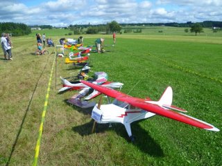 Meteorologická předpověď nelhala a tak se ranní oblačnost odsunula někam do neznáma a nás čekal krásný slunečný den, na modelářském letišti, které se postupně zaplnilo, jak různými modely letadel, tak modeláři a v neposlední řadě i diváky.